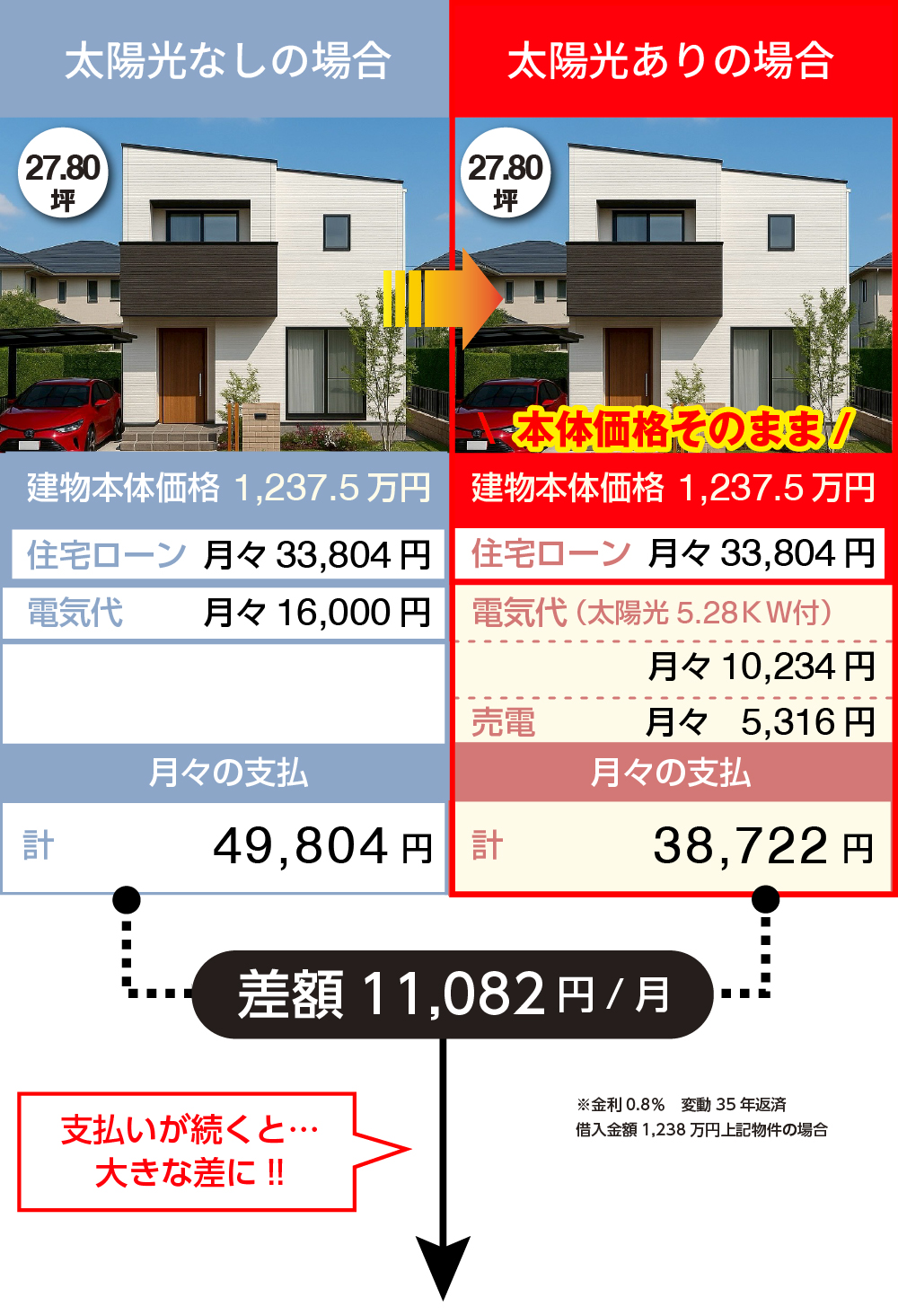 備考:5.28 kw(平均売電単価1KW=14.6 円税込) ※最初の4年間:24円/kWh 5年目以降~10年目 8.3円kWh 売電期間:10年間(固定買取価格)